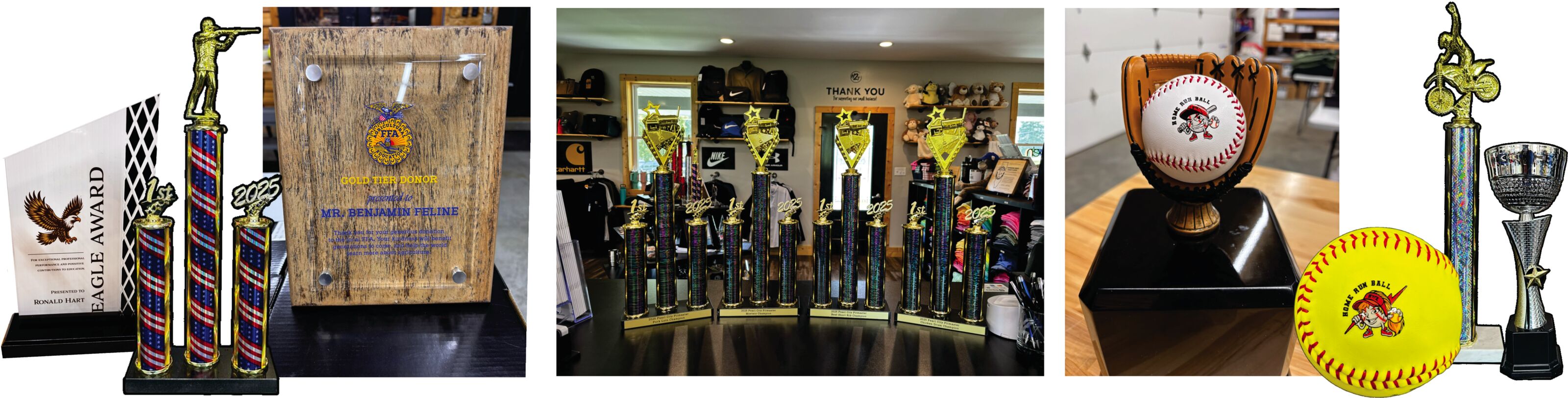 At Head2Toe Custom Apparel & Design, we celebrate achievements with high-quality, custom trophies and awards crafted right here in our shop. Whether you're recognizing athletic accomplishments, academic success, employee milestones, or special events, we create awards that make every moment memorable. Because all of our laser engraving and UV printing is done in-house, we maintain complete control over quality, turnaround time, and customization. We provide a wide variety of award styles and materials to fit any occasion, including: traditional trophies, plaques, acrylic awards, glass awards, custom engraved plates, corporate recognition awards, team and league trophies, event and competition awards. If you have a specific idea in mind, we’re happy to help design something unique. Learn more about our trophy and award services by calling us at 815-369-1022.